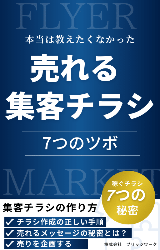 もし、あなたが少しでも集客チラシに悩みを抱えているなら、今すぐにこの特別レポートを手に入れてください。あなたの集客チラシが変わります。